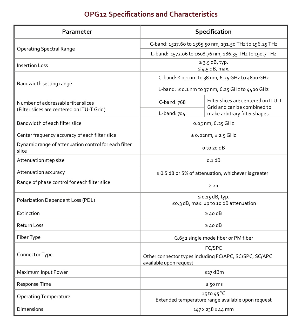 OSG12可编程光学相位滤波器是高分辨滤波器,可将通带滤波器波形改变到6.25 - 4800 GHz,经直观的用户界面可由个人电脑控制。