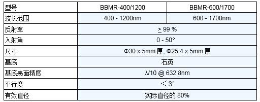 ·在400-1200nm或600-1700nm宽的波长范围反射率高达99%以上