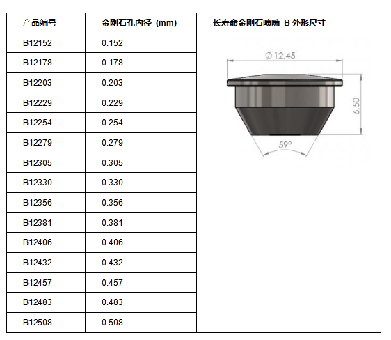 长寿命的金刚石喷嘴都是由镶嵌的金刚石孔制成的,金刚石是最坚硬最耐磨的材料,更长的金刚石喷嘴的寿命不仅减少了使用金刚石孔的数量,而且金刚石孔的使用时间超过1000多小时,在其使用时间内保持精密性和高精度。这样,不但获得更好的性能,而且大大地缩短了更换金刚石孔和系统校准的停机时间。长寿命的金刚石喷嘴使整个工作过程更具成本效益。我们为各种工作应用提供各种各样的金刚石喷嘴,为了提高生产效率、降低总体成本,我们可根据用户的要求提供定制的长寿命的金刚石喷嘴,承接各种非标喷嘴的生产制造。我们提供两种金刚石喷嘴:实心金刚石喷嘴和纳米金刚石喷嘴。